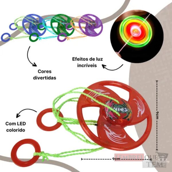 Diversão Garantida, esse brinquedo vai encantar crianças e adultos! Basta puxar a corda e ver o Spinner girar em alta velocidade, criando um show de luzes coloridas com LEDs brilhantes. Efeitos de Luzes Espetaculares, à medida que o Spinner gira, ele emite luzes LED que criam padrões hipnotizantes, tornando a brincadeira ainda mais divertida, especialmente à noite!