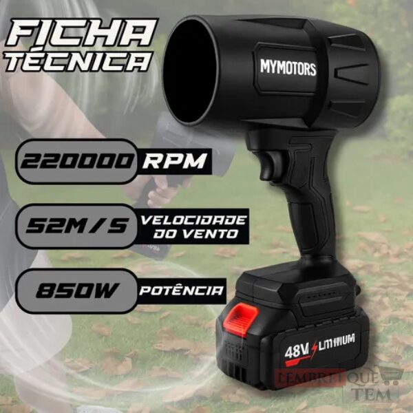 Soprador de Ar Turbo Portátil 48V Recarregável com 2 Baterias – Limpeza Profissional Sem Fio